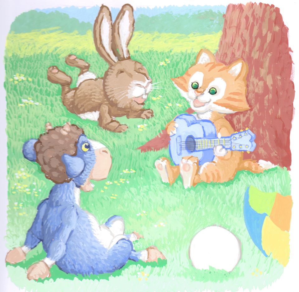 Everything is blocked in now and I've worked up the texture on the three characters' hairy bodies. The next and last stage is tweaking, looking at every element to see how it could be improved: does it need more or should it be left alone?